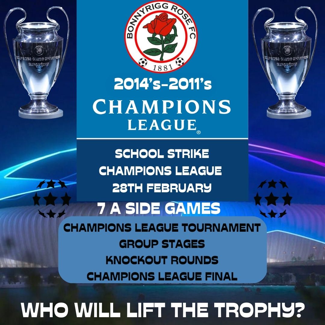 On the School Strike 28th February we will host a 7 a side Champions League tournament.