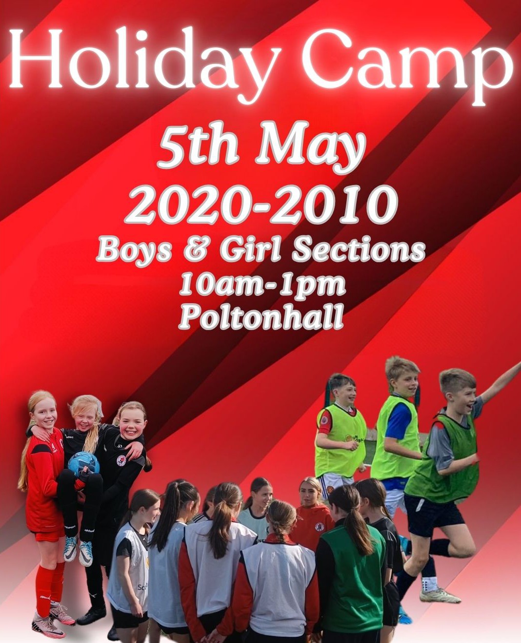 The camp will take place on AstroTurf. Appropriate footwear should be worn, for entering onto the pitch. This is moulded studs (NO FLAT SOLE TRAINERS, INCLUDING ASTROTURF TRAINERS). There is access to a boot bank if you do not have moulded boots.There will be a register taken on arrival and belongings can be placed in the changing rooms before we head out to the pitches. We ask if players can arrive no earlier than 9:45am and pick up time is 1pm. In the case of inclement weather, we have access to the pavilion for fun activities, should it be required.
